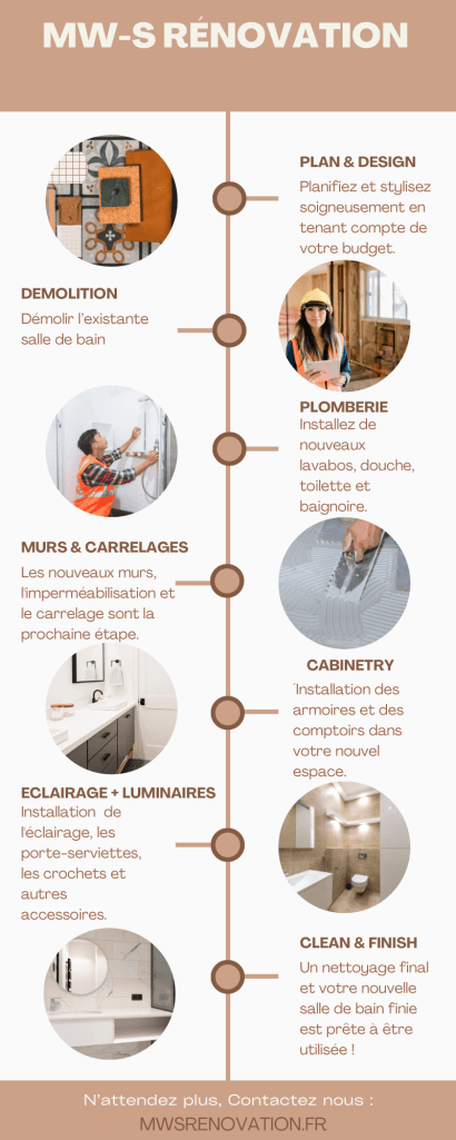 Notre équipe de professionnels expérimentés assure la qualité de chaque étape du processus de rénovation, du démontage de votre ancienne salle de bain à l’installation de vos nouveaux équipements sanitaires. Nous nous engageons à vous fournir une salle de bain fonctionnelle et esthétiquement plaisante qui répond à vos besoins spécifiques.
